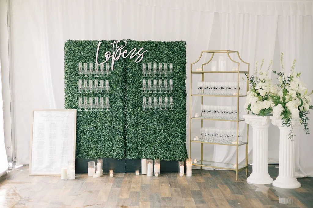Complete the look with eye-catching centerpieces, book selves or hedgewalls with custom signage. Whether you prefer modern elegance or vintage charm, Total Events has everything you need to enhance the beauty of your celebration.